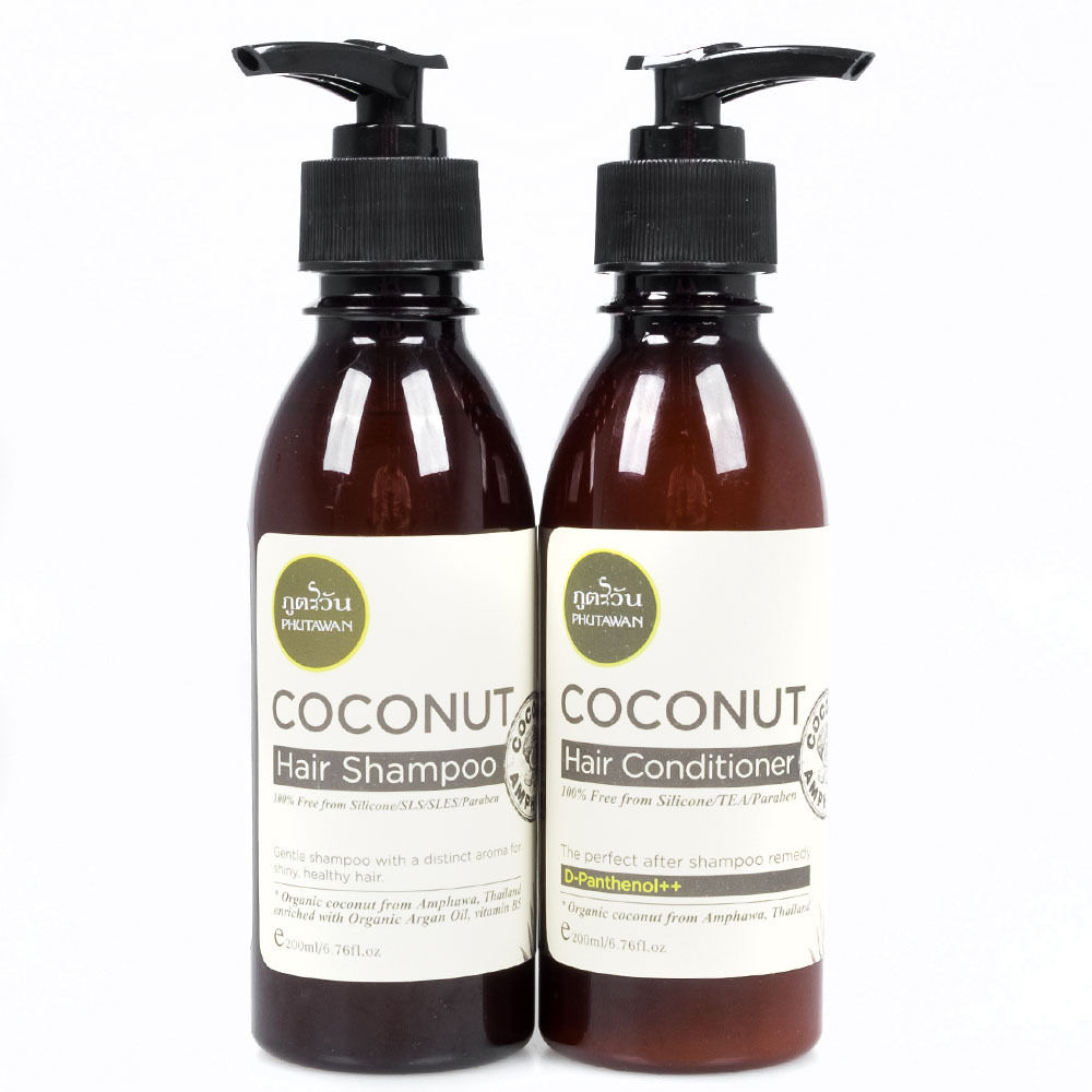 Phutawan Thai Coconut Hair Shampoo & Conditioner No Silicone Paraben Free 200 ml. Thailand